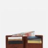 Estructura de dos cuerpos sin sencillera y compartimientos para billetes. documentos y tarjetas.