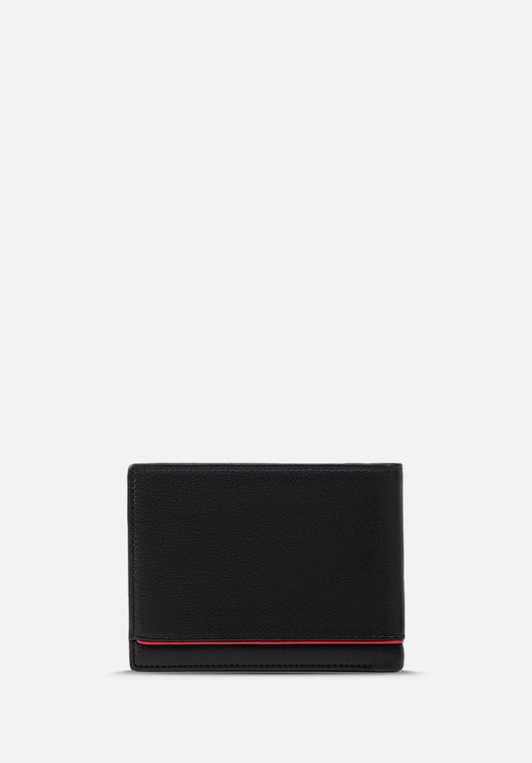 Billetera de estilo casual en cuero grabado. con detalle en contraste.