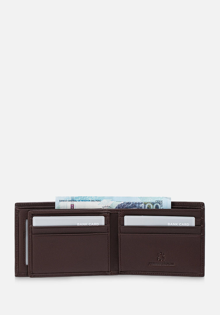 Estructura de dos cuerpos sin sencillera y compartimientos para billetes. documentos y tarjetas.