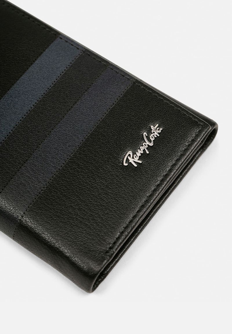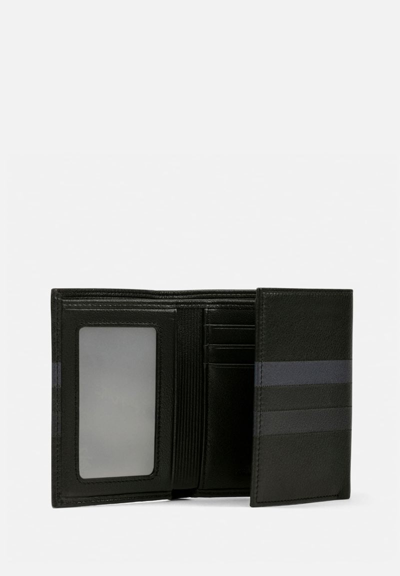 Estructura de tres cuerpos sin sencillera y compartimientos para billetes. documentos y tarjetas.