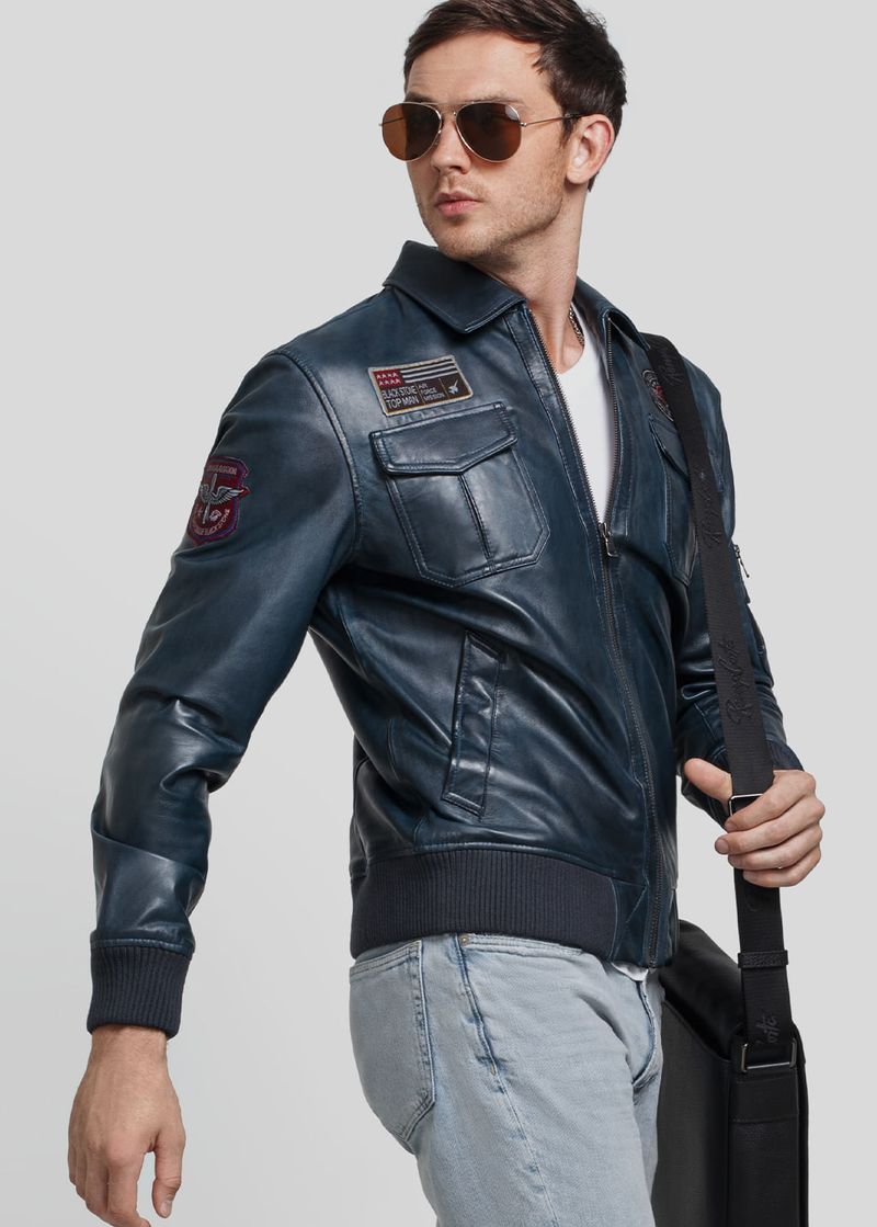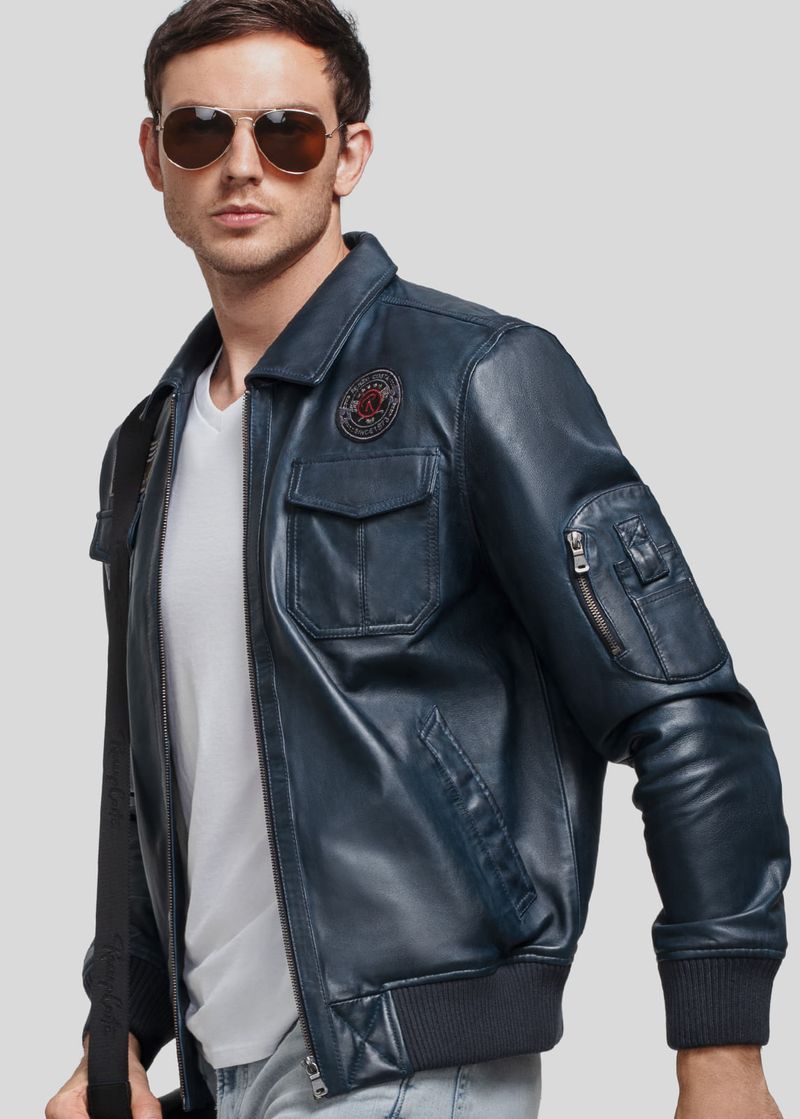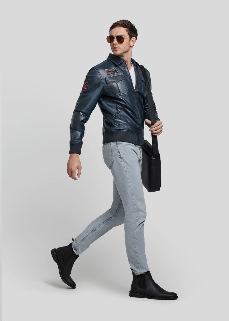 La Casaca Aviador. actualizada con un enfoque urbano y contemporáneo. Confeccionada en cuero genuino de textura suave. destaca por su silueta tipo bomber. los parches bordados inspirados en la aviación y su estructura. realzan la figura masculina. El cuello camisero le aporta un toque clásico. mientras que los puños y basta en tejido aseguran un ajuste cómodo y moderno. Cada detalle ha sido pensado para ofrecer estilo. funcionalidad y carácter: una prenda con alma de aventura y versatilidad total. Ideal para elevar cualquier look urbano con personalidad propia. ya sea en el día a día o en salidas más casuales con actitud