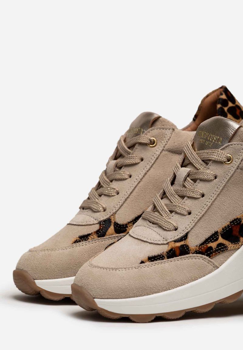 Los Sneakers Wild Mix combinan cuero natural liso. gamuza y aplicación de pelo con acabado animal print. creando una mezcla de texturas moderna y llena de personalidad. Su diseño se apoya en una planta alta de goma que brinda ligereza y confort al caminar. Con un estilo versátil y actual. estos sneakers aportan un toque audaz a cualquier look casual. manteniendo el equilibrio perfecto entre comodidad y actitud.
