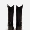 Las Botas Texanas Urbanas son una propuesta de cuero para mujer con estilo western moderno. Están elaboradas en cuero natural suave al tacto. con un acabado envejecido y ligeramente grabado que aporta carácter y autenticidad. Su diseño de caña media. tacón robusto y correa con herraje metálico refuerza el aire boho y texano que marca tendencia.