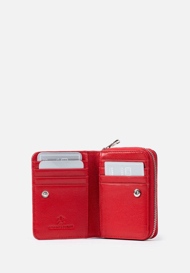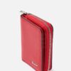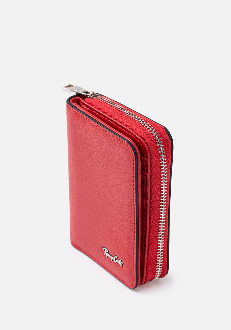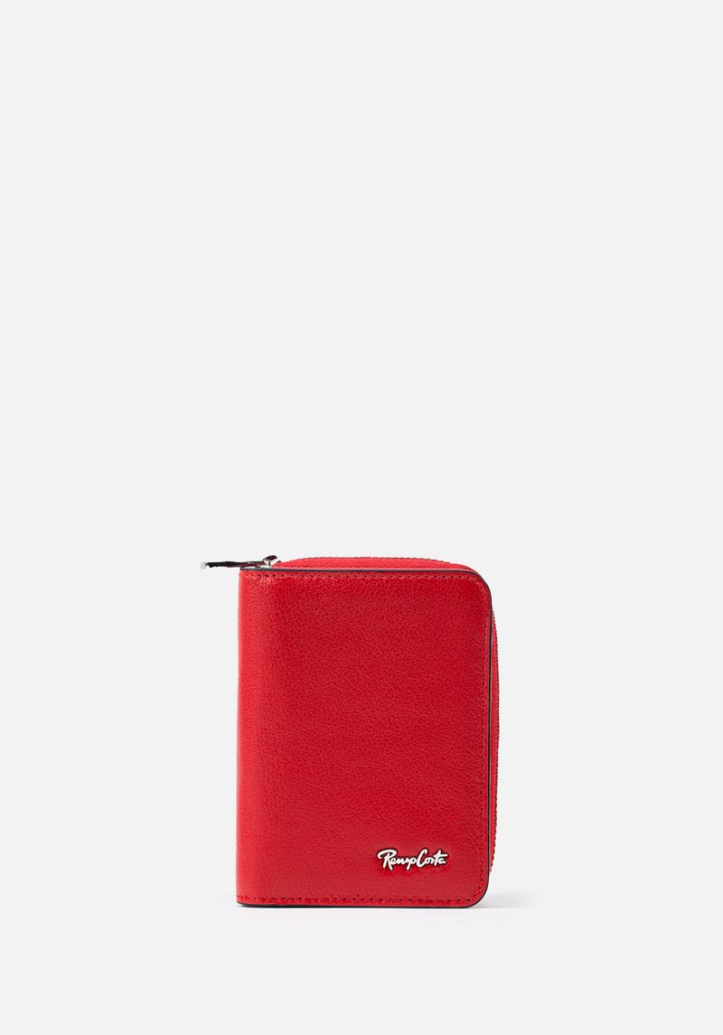 Monedero casual con múltiples compartimientos para tarjetas en cuero grabado color entero.