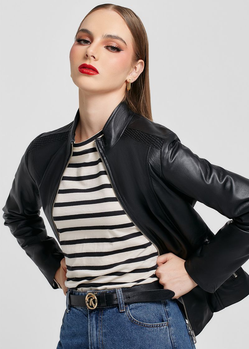 CASACA DE CUERO CON DIFERENTES TEXTURAS