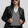 La casaca Axelle. es el básico infalible con alma de tendencia. Confeccionada en cuero liso de tacto ultra suave. presenta un diseño entallado que estiliza la figura gracias a cortes estratégicos que definen su silueta.