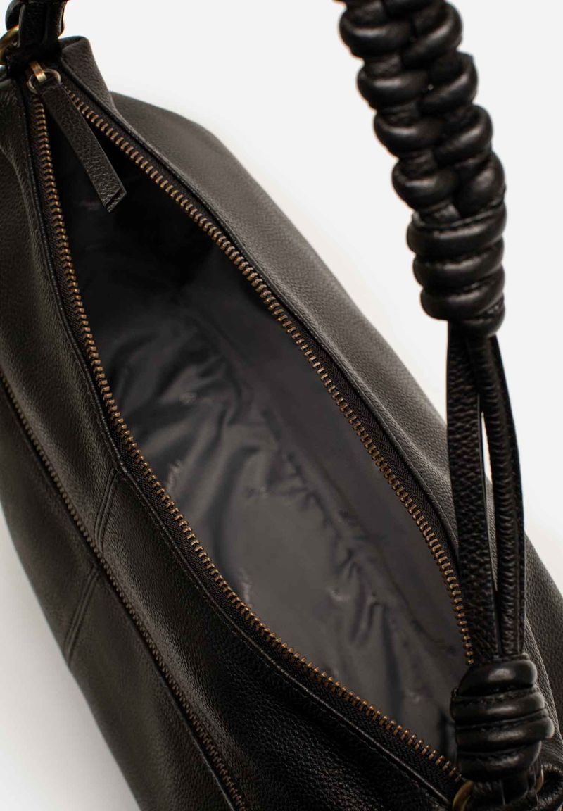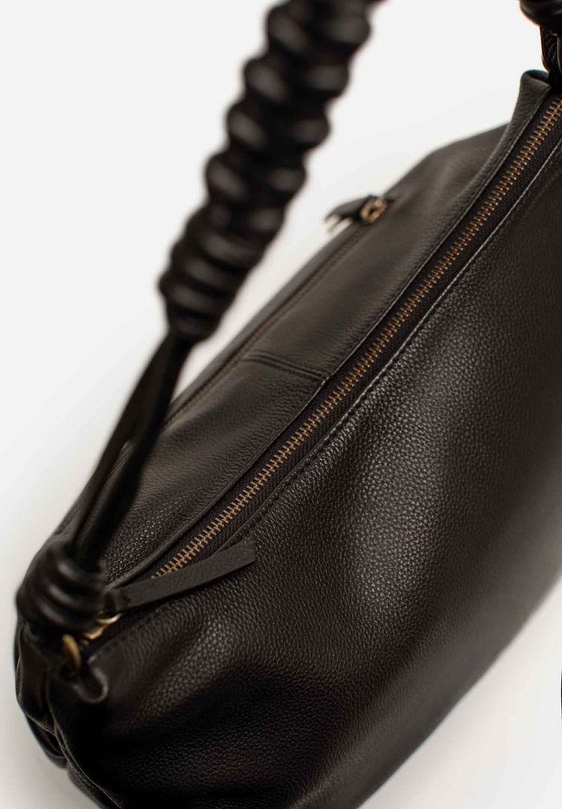 El bolso de cuero Asa Nudos Grande combina comodidad y estilo en un diseño versátil para el día a día. Elaborado en cuero natural de acabado grabado suave. destaca por su asa con detalles de nudos artesanales. un toque distintivo que realza su carácter moderno y auténtico.