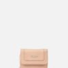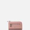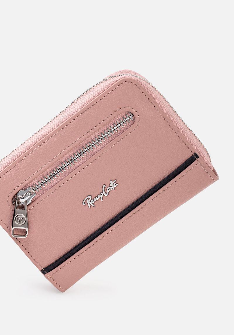 Monedero casual en cuero grabado con múltiples compartimientos para tarjetas y monedas.