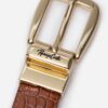 La Correa Reversible Croco está elaborada en cuero natural, con dos acabados que se complementan: un lado con textura grabada tipo croco y otro completamente liso. Su hebilla dorada le añade un toque distintivo y sofisticado. Diseñada para acompañar distintos estilos, esta correa reversible permite crear looks femeninos y versátiles, desde los más casuales hasta los más refinados.