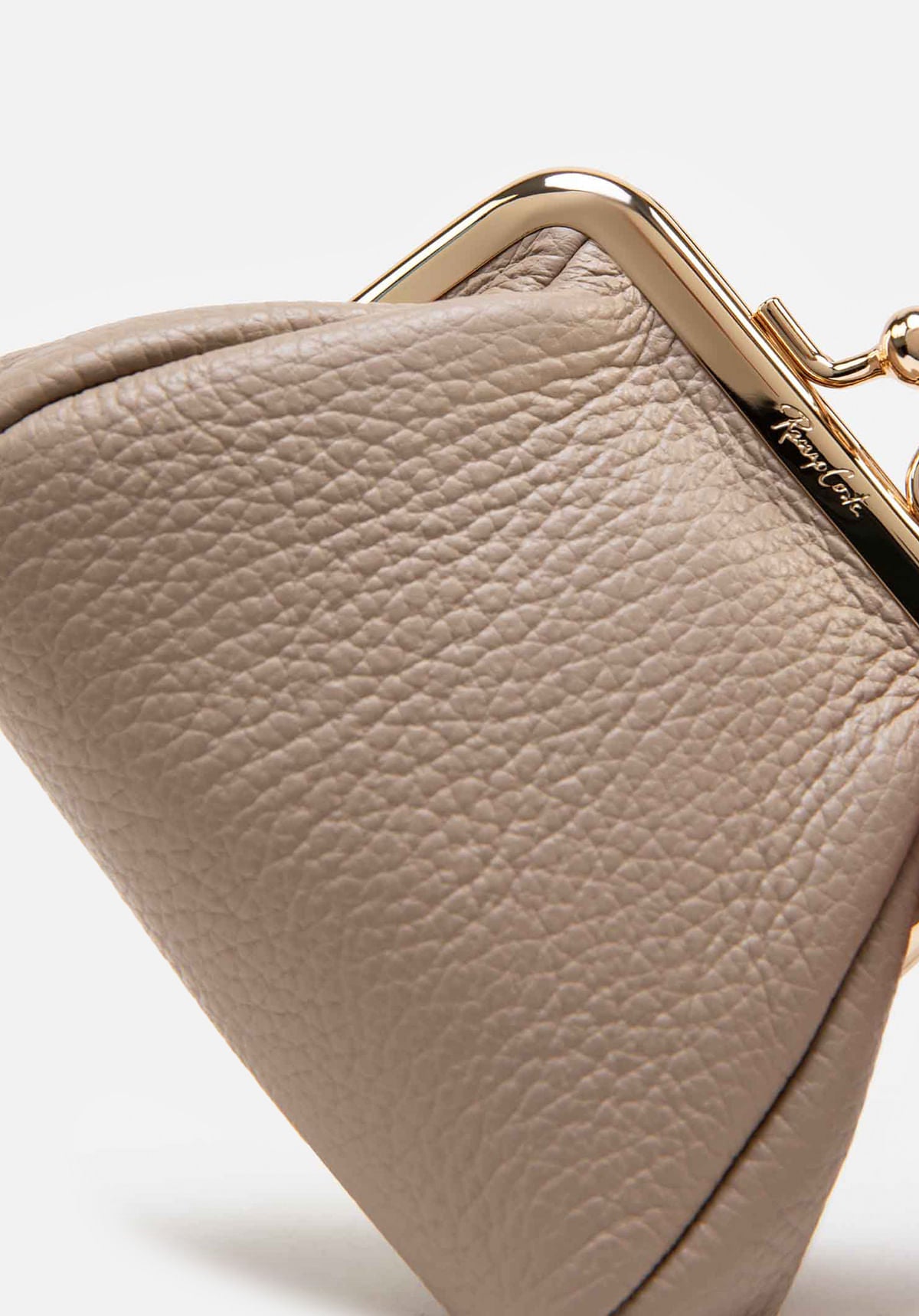 Un toque de brillo en la palma de tu mano. Golden Click es el monedero perfecto para llevar lo esencial con estilo. Su bisagra dorada abre paso a un único compartimiento práctico y compacto, ideal para esos pequeños tesoros del día a día. Hecho de cuero con acabado granulado, combina elegancia y funcionalidad en un diseño encantador.