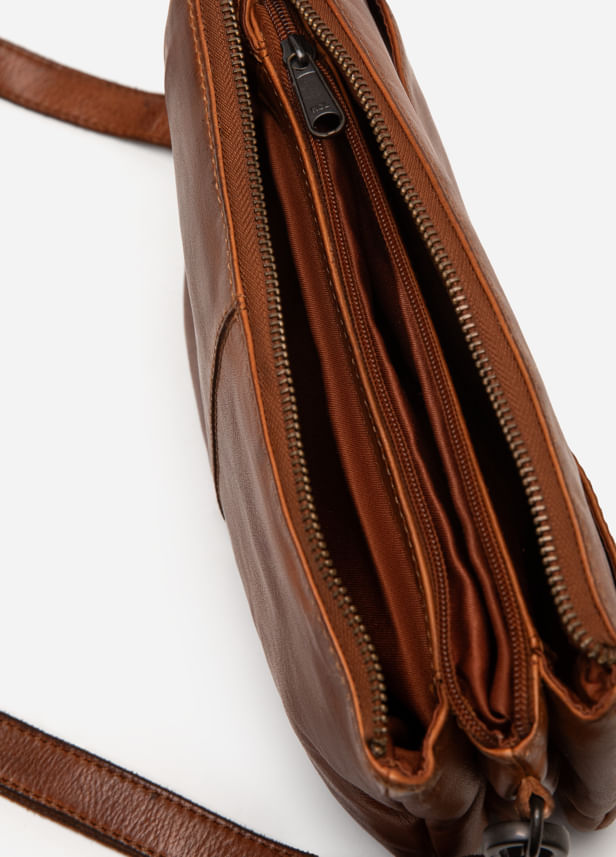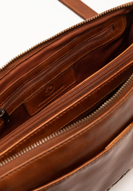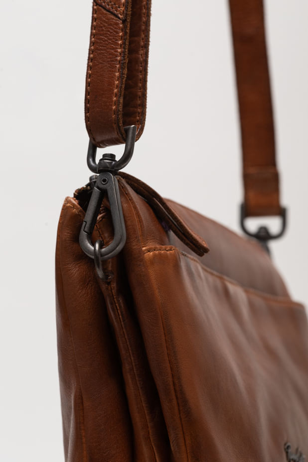 Elaborado en cuero natural con acabado envejecido, este morral combina suavidad al tacto y estilo auténtico. Su diseño cuenta con varios compartimientos y bolsillos internos que permiten mantener todo en orden, además de una correa ajustable para llevarlo al hombro o cruzado.