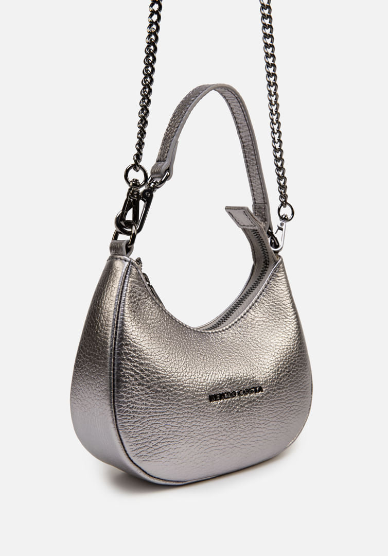 Una silueta que despierta gran obsesión: así es nuestro pouch bag Bell. Confeccionada en cuero grabado de tacto suave, lleva nuestro logo en una versión moderna y minimalista. Disponible en tres tonos metalizados para darle un toque brillante. Llévala a la mano o al hombro, gracias a su cadena extraíble.