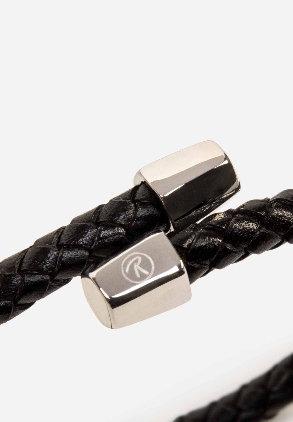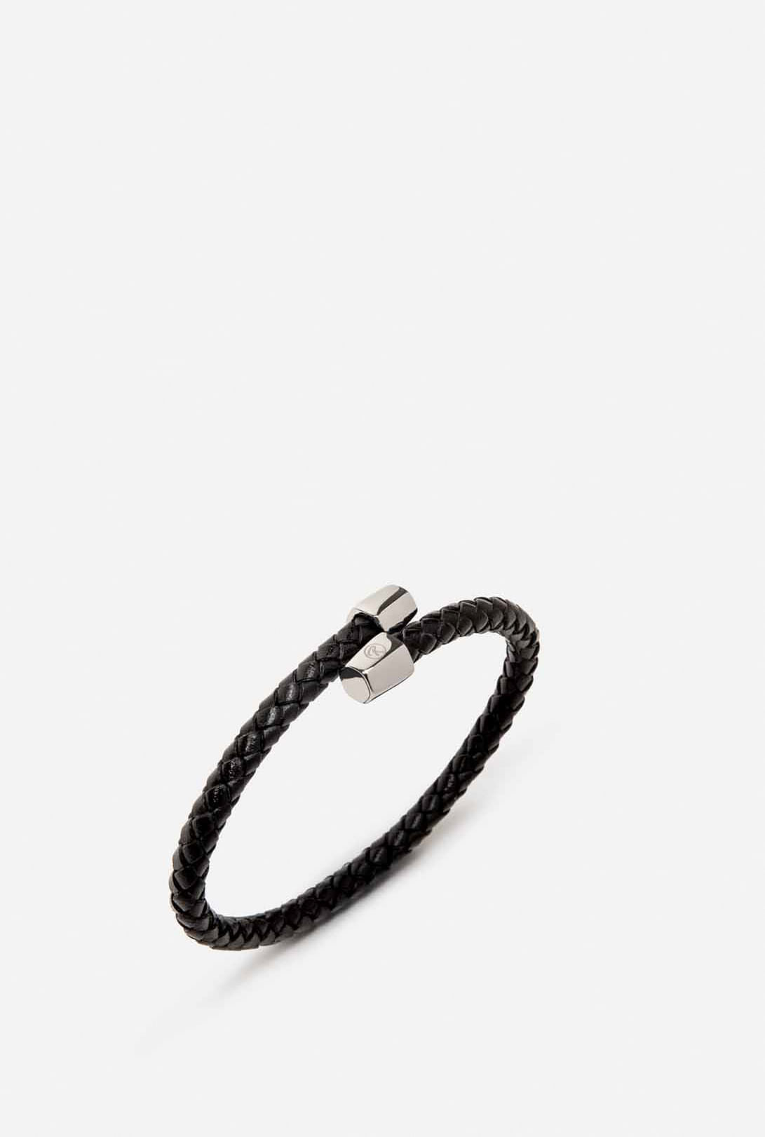 La Pulsera Dual Twist, elaborada en cuero liso trenzado, es un accesorio unisex con diseño abierto y terminales metálicos de acabado brillante. Su forma flexible permite un calce cómodo, ideal para usar solo o combinado con otras pulseras. Una pieza de estilo minimalista que destaca por su textura sobria y su versatilidad para acompañar looks urbanos, casuales o de inspiración contemporánea.