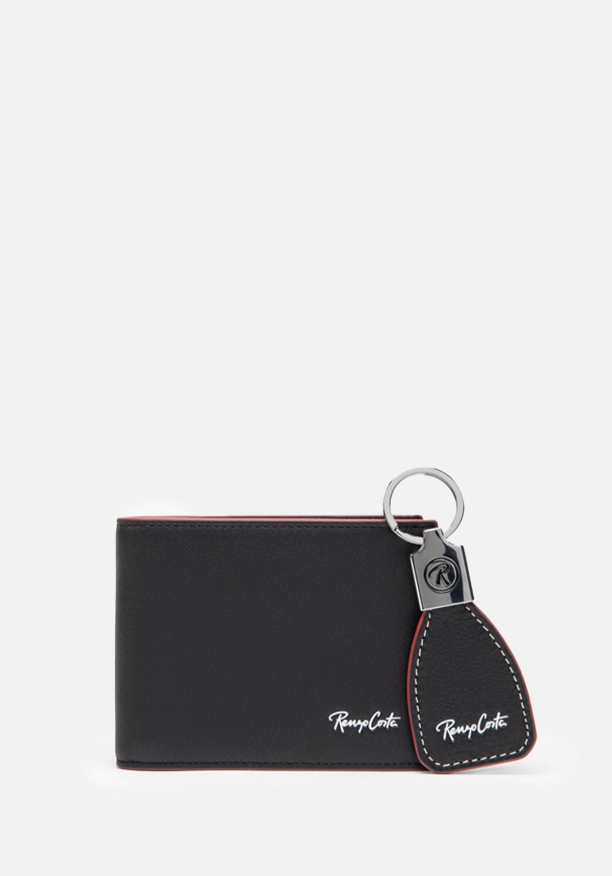 Nuestro set Red Line es el dúo perfecto que combina funcionalidad y originalidad. Este juego consta de una billetera con estructura de dos cuerpos, ranuras para tarjetas, espacios para billetes y documentos además de un llavero finamente grabado con los logos de marca, ambos elaborados en suave cuero de textura granulada. Es la elección ideal de regalo o para llevar siempre contigo.